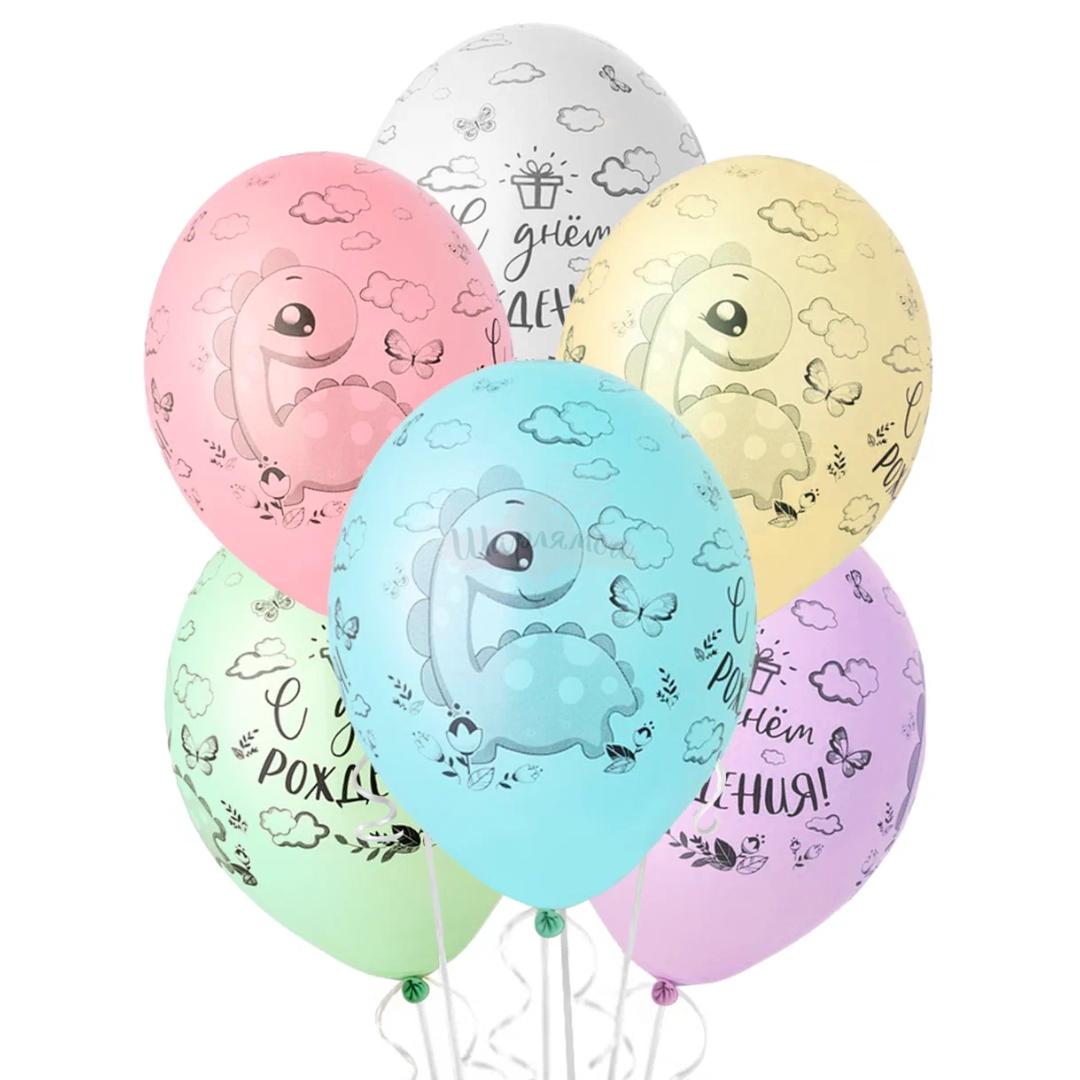 Шары латексные "Динозаврик макарунс" с гелием и обработкой