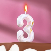 Свеча-цифра "3" в торт "Белый мрамор" 5,5см